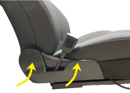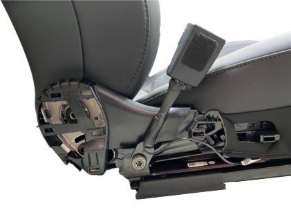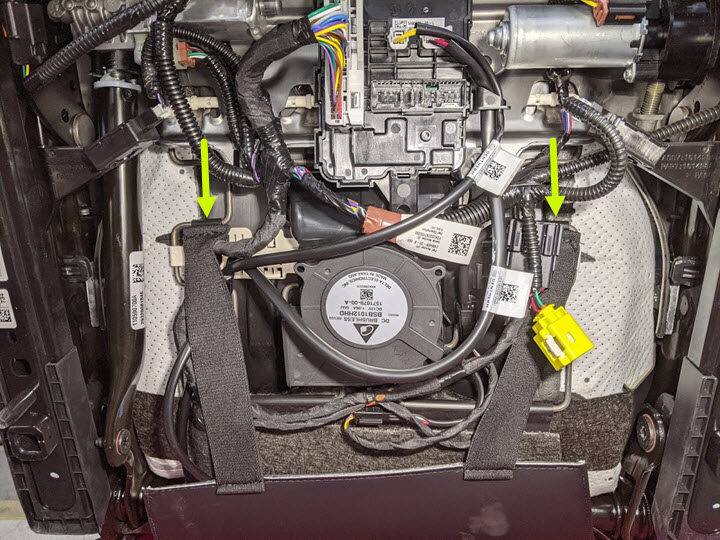 Position seat to gain access below seat bottom and connect LH side body harness to seat controller