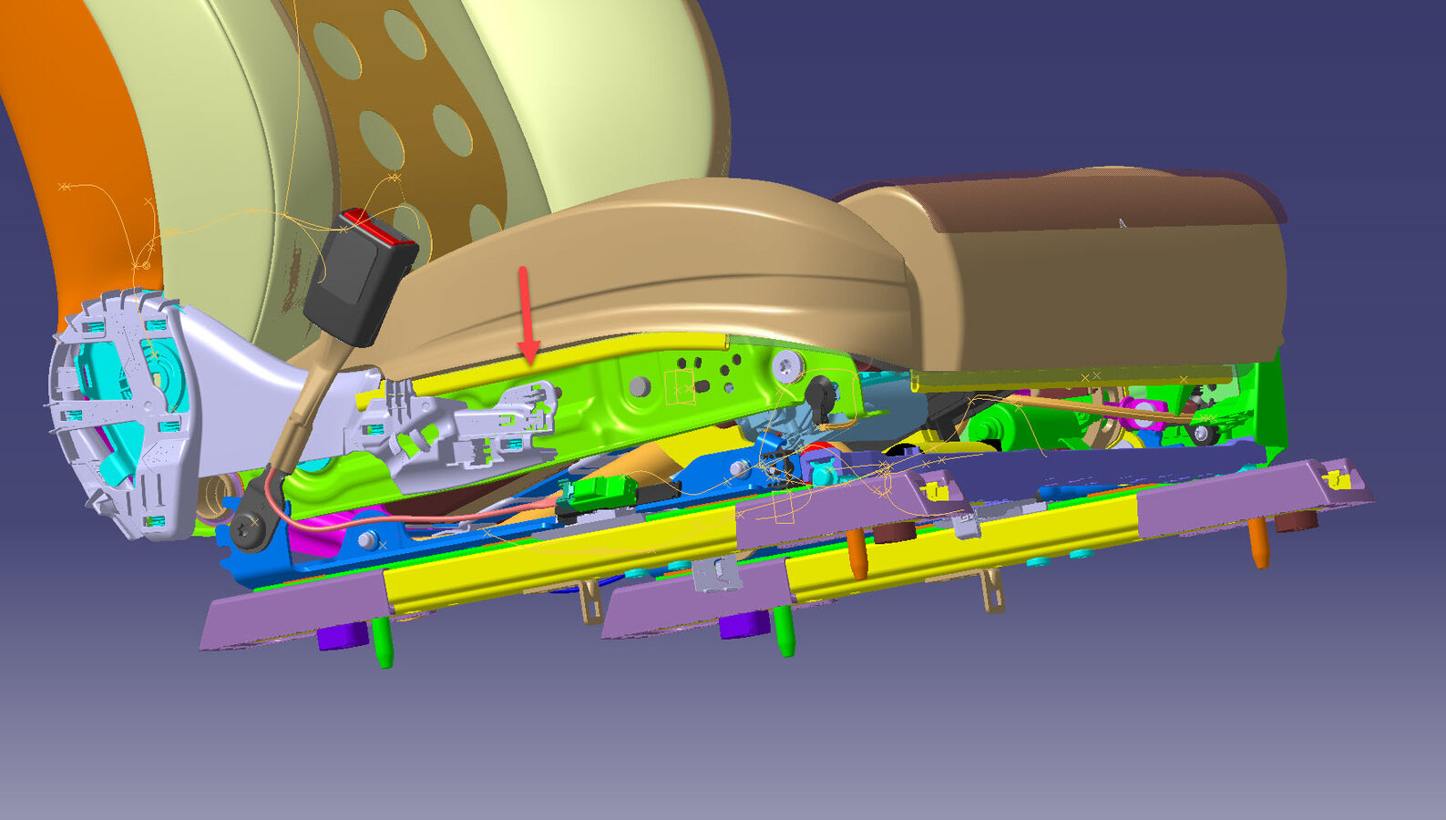 Open SBR bracket containing OCS harness and route harness between cushion and frame