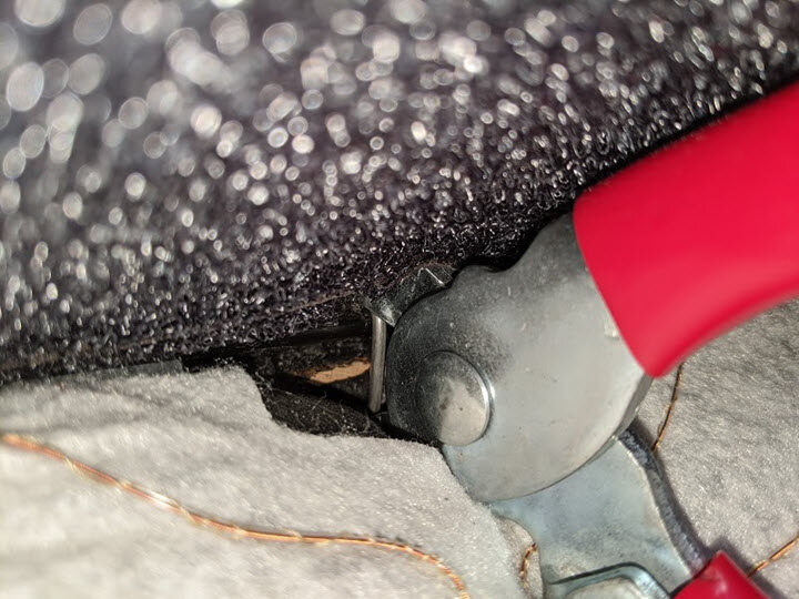 Note3x hog rings, Push down on foam to allow access, Place hog ring into pliers prior to installation, Start with center ring and work your way out