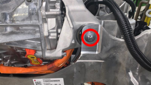 fasten the clip that attaches the electrical harness to the rear drive unit
