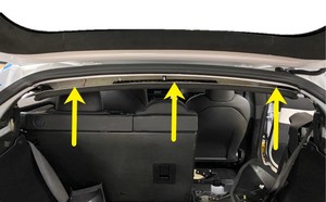 the C-pillar, and then fasten the clips (x7) that attach the trim to the vehicle.