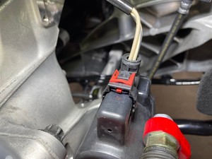 LH electronic parking brake motor connector, and then fasten the connector red locking