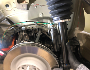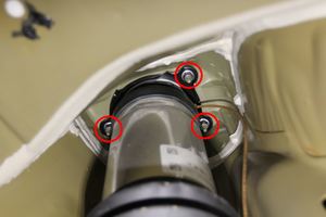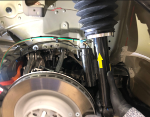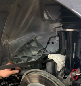 body, move the top end of the LH rear active damper up onto the studs, and them move the