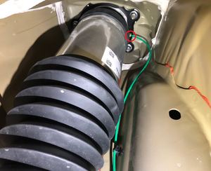 the LH rear active damper connectors (x2) and release the grommet that attaches the