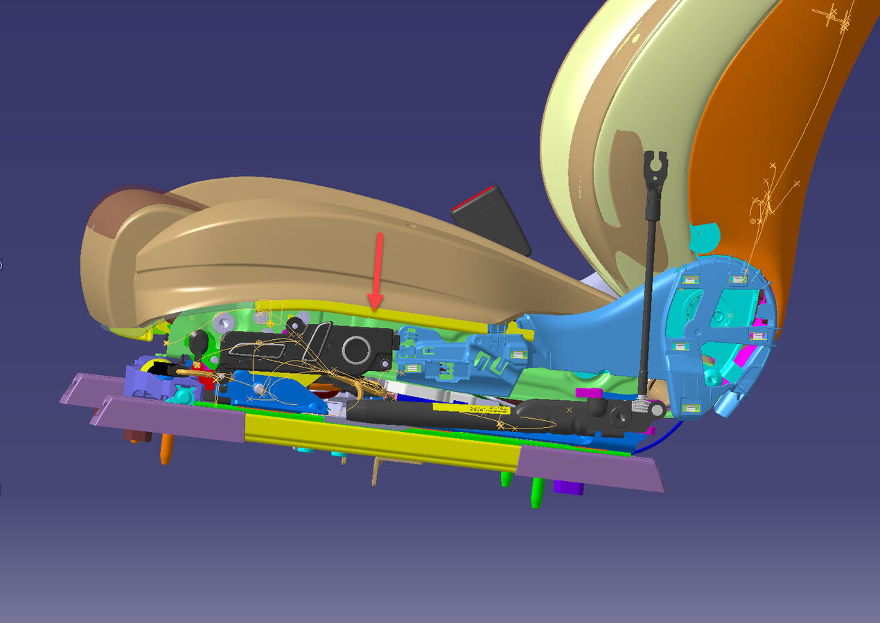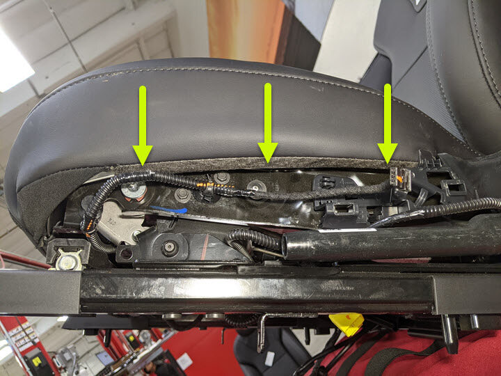 Open SBR bracket containing OCS harness and route harness between cushion and frame