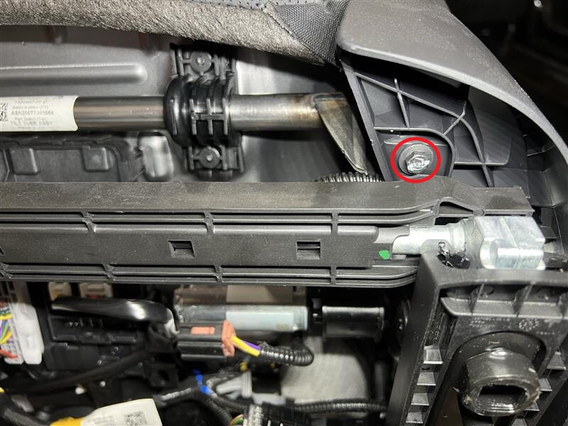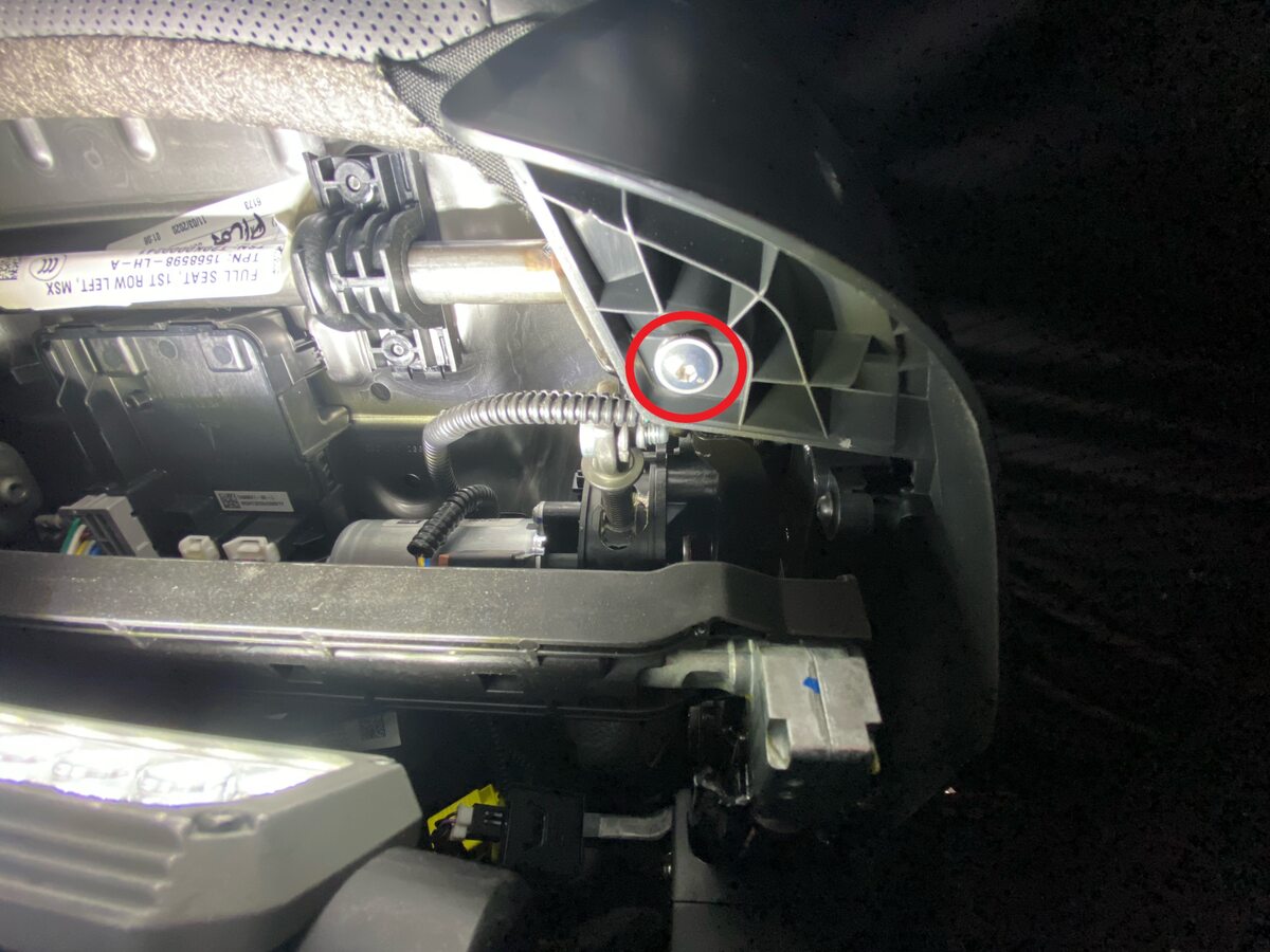 Note1x screw, T20, 4 Nm or 1x bolt, 8mm, 4 Nm, Maneuver seat assembly as needed for access, Bolt may vary on build