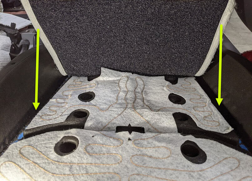 NoteFeed trim between seat back trim and seat frame, Maneuver seat assembly as needed for access
