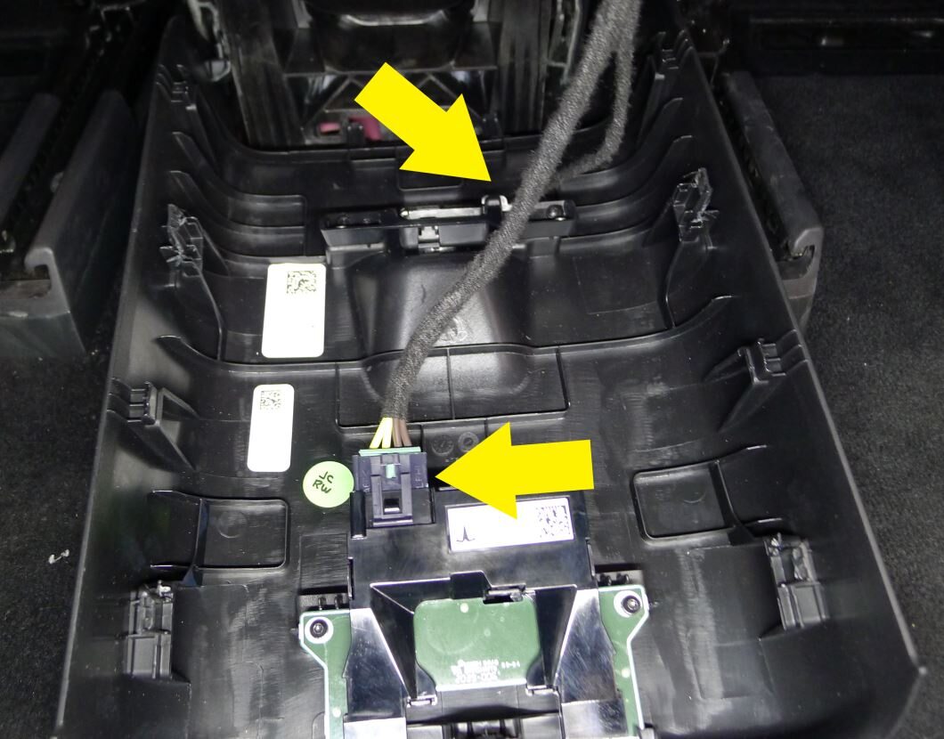 Desconecte los mazos de cables eléctricos del conjunto USB y de la luz; a continuación, deslice hacia atrás el conjunto del panel trasero de la consola central para extraerlo del vehículo.