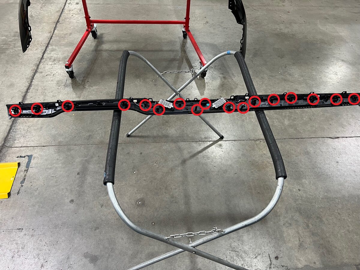 앰비언트 브라이트 전기 커넥터(2개)를 연결한 다음, 주 계기판 장식을 계기판에 고정하는 클립(21개)을 고정합니다.
