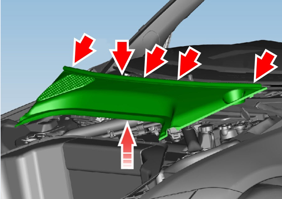 Vehicles built through April 11, 2016 Vehicles built after April 11, 2016 - Remove the rear center underhood apron.