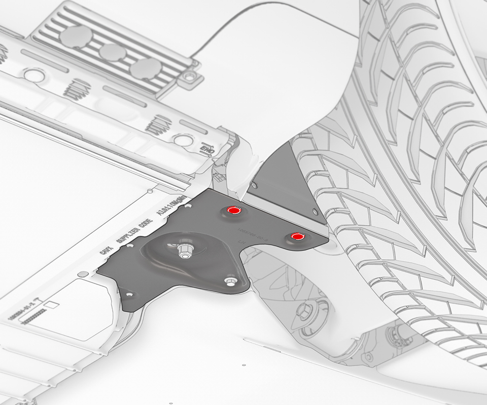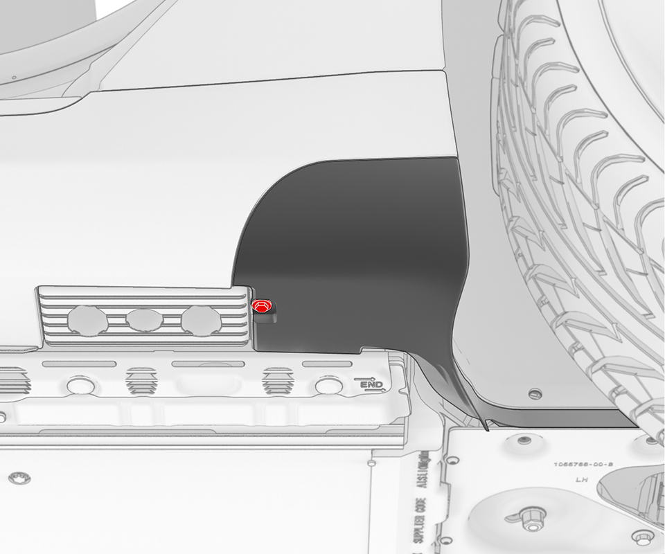 Remove the bolt behind the LH rear wheel well liner that attaches the LH rear wheel fairing to the vehicle, and then remove the fairing (torque 10 Nm).