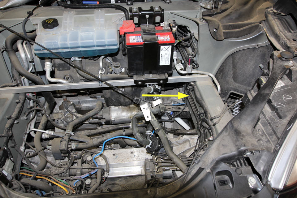 Release the clip that attaches the coolant hose to the LH side of the frame rail.