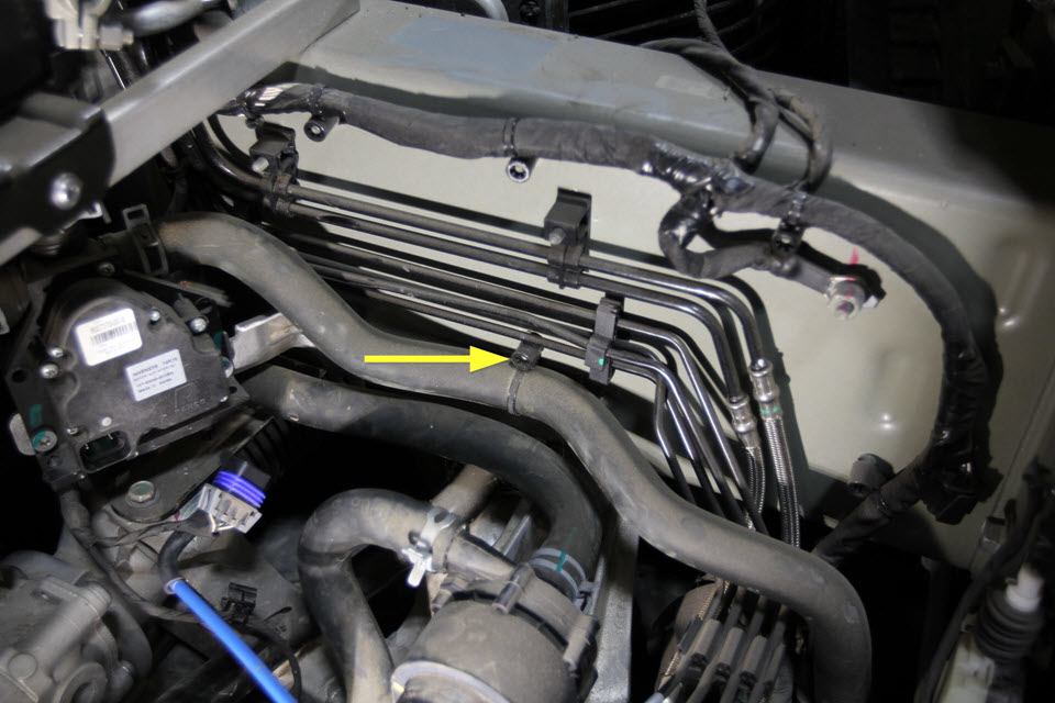 Install the clip that attaches the coolant hose to the LH side of the frame rail.
