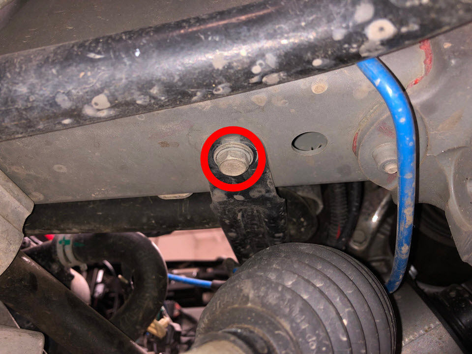 Hand-tighten the upper bolt that attaches the LH front subframe brace.