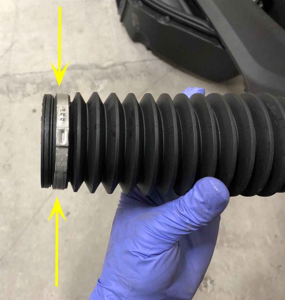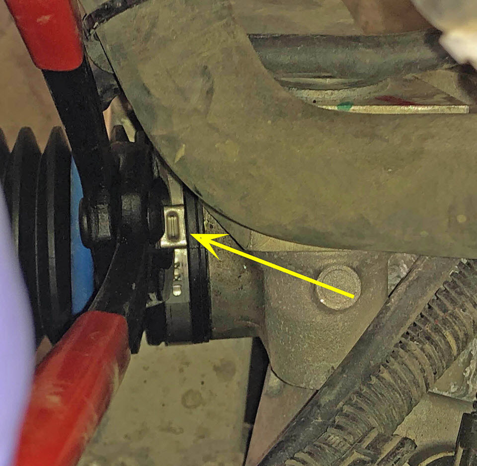 Install the inner band clip on the LH tie rod belows, but do not clamp the clip at this time.