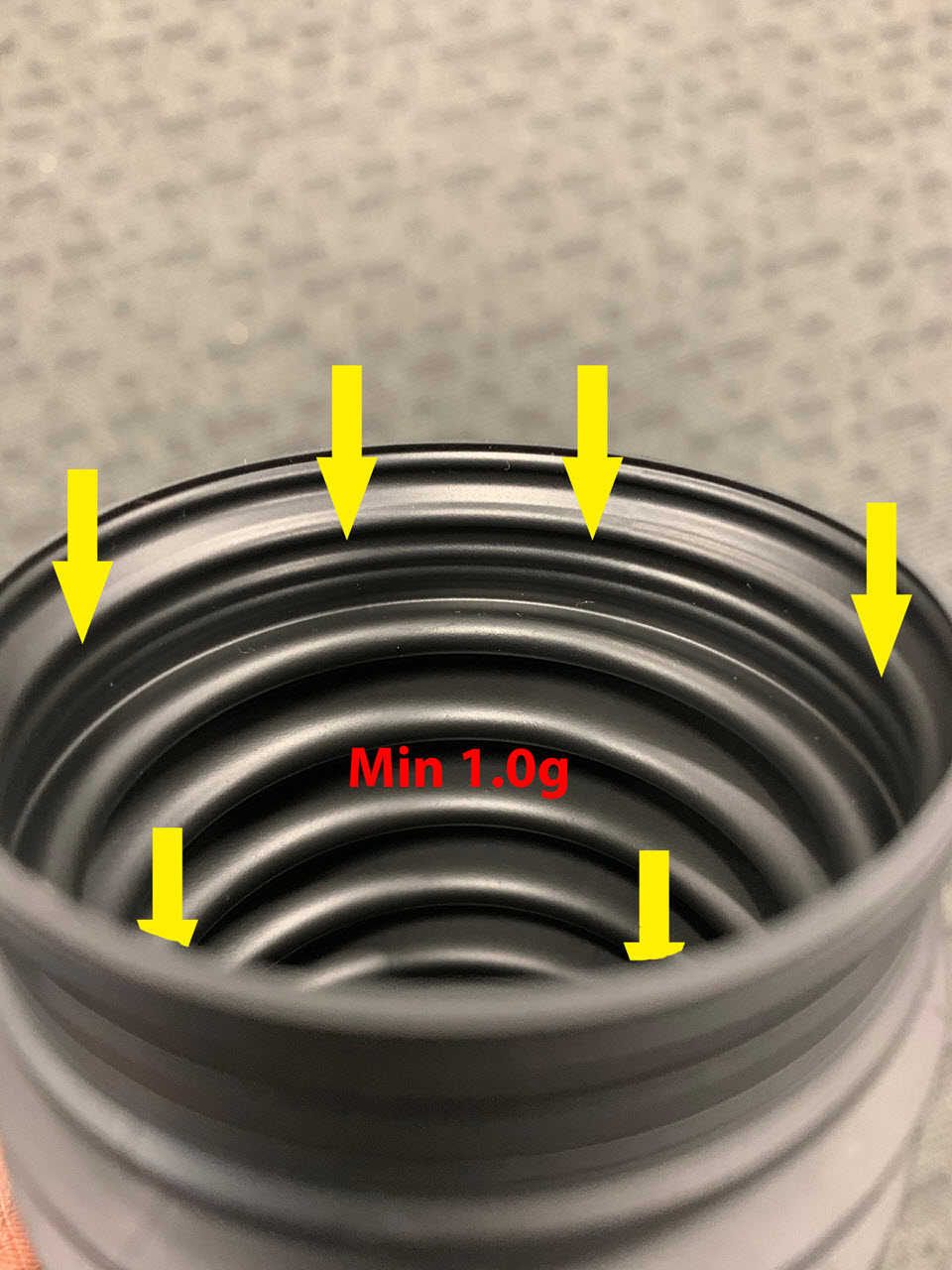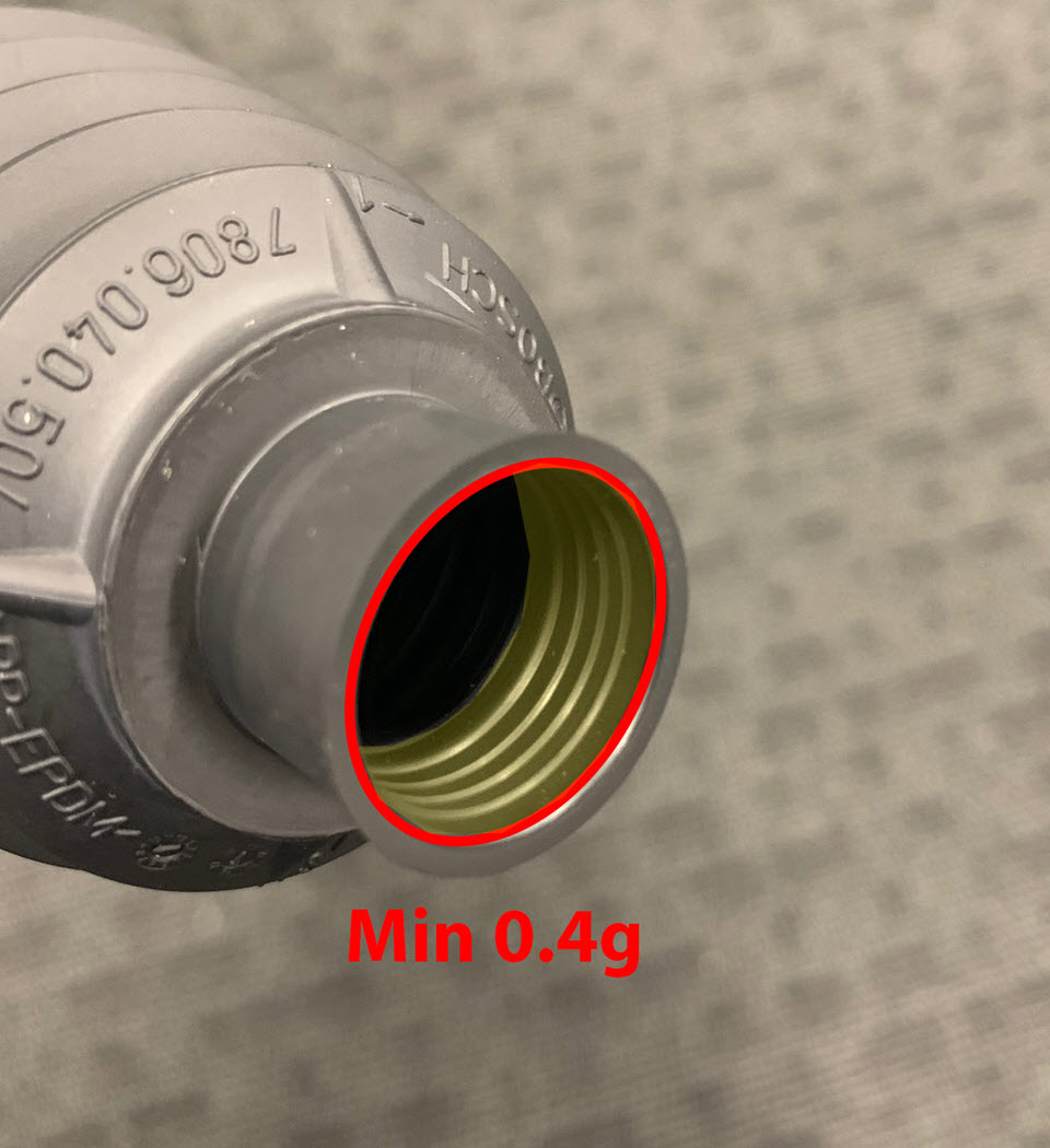 Use the following amount of Renolit JP 1619 grease (included with the inner tie rod service kit) to lubricate the bellows before installation: