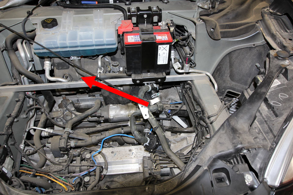 Tighten the upper bolt that attaches the LH front subframe brace (torque 26 Nm).