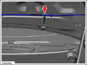 Align the washer jet angle to between the middle of the windshield and 15 mm above the black border of dots (frit) along the bottom of the windshield (11 degrees +/- 1 degree).
