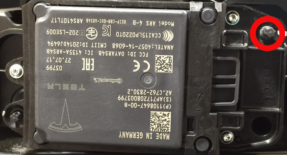 Vehicles built between April 10, 2016 and August 20, 2017 Adjust the alignment set screw on the left side of the radar sensor.