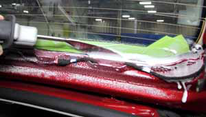 Apply the urethane to the liftgate glass. Be sure to follow the original pattern.