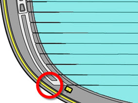 CAUTIONOnly use the Equalizer Express360 to cut the 2 lines of urethane at the back of the liftgate glass (shown in green in the figure below). Do not use it to cut the urethane at the sides or bottom of the glass.