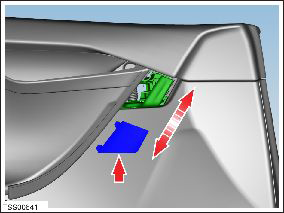 Remove screws (x3) and nut (x1) securing interior door handle to trim pad (torque 3 Nm).