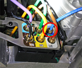 - Gently pull on the air suspension line to make sure the line is fully secured to the compressor.
