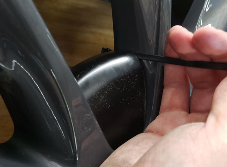 Figure 1. Position the extruded end of the zip tie away from the wheel spoke -
