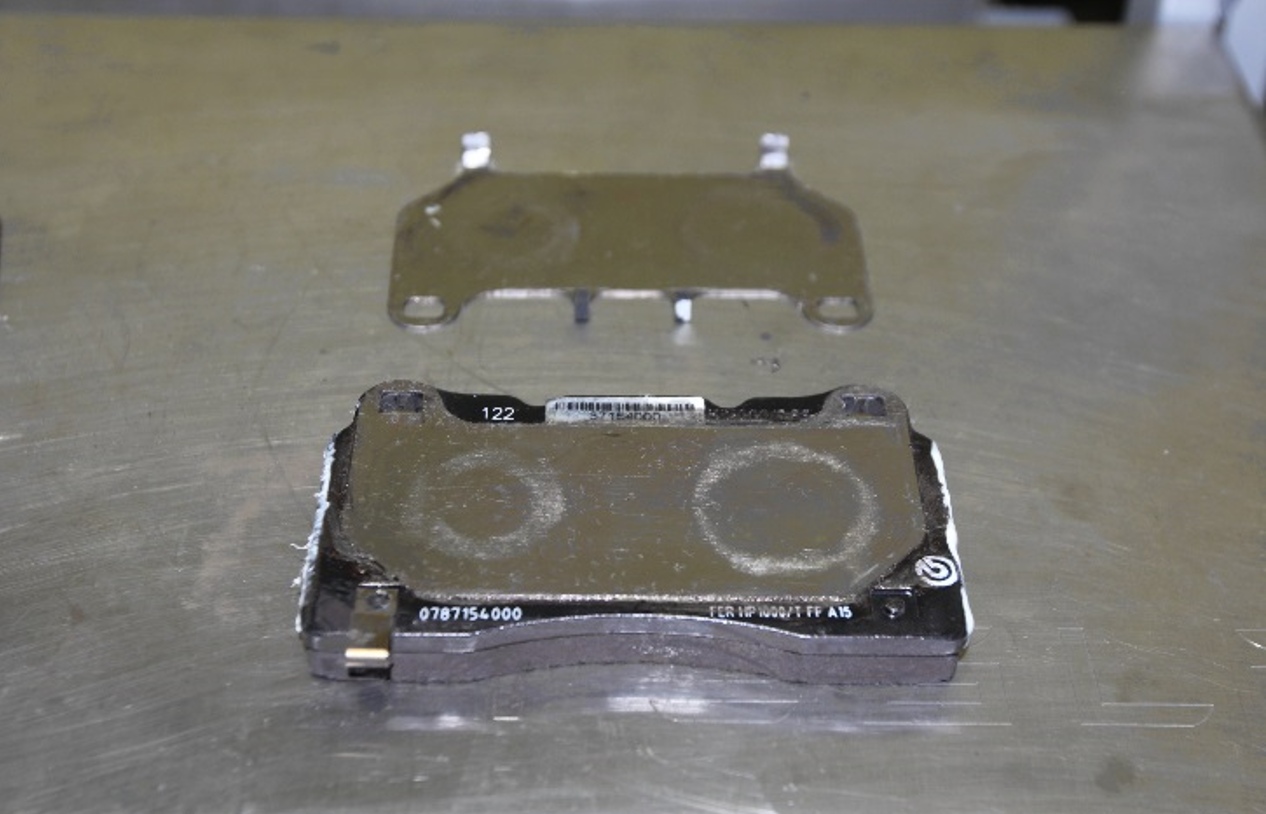 CAUTIONDo not mix brake pads, as they have worn specifically to their respective position within the carrier.