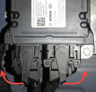 NoteThe RCM for vehicles built through February 25, 2019 uses a different retention latch mechanism to secure harness connectors than the RCM for vehicles built after February 26, 2019.
