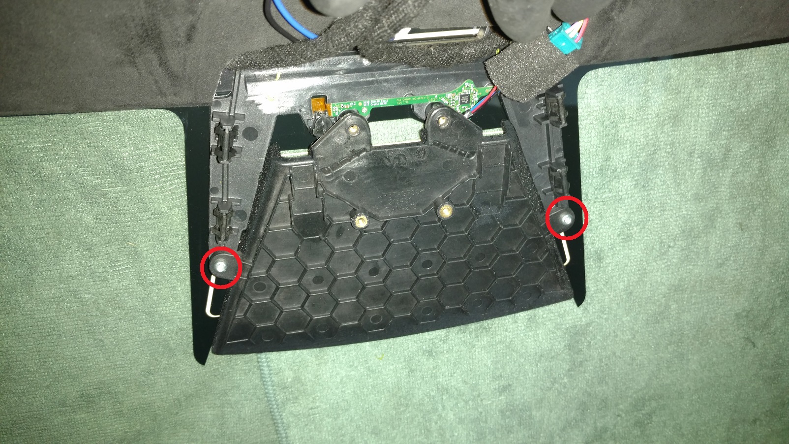 9. Remove the screws (x2) that attach the glare shield to the windshield, and then allow the glare shield assembly to hang from the harness.
