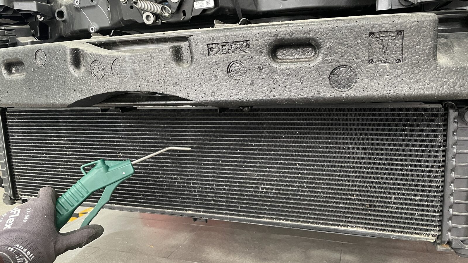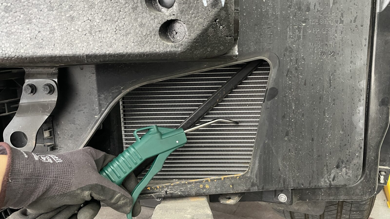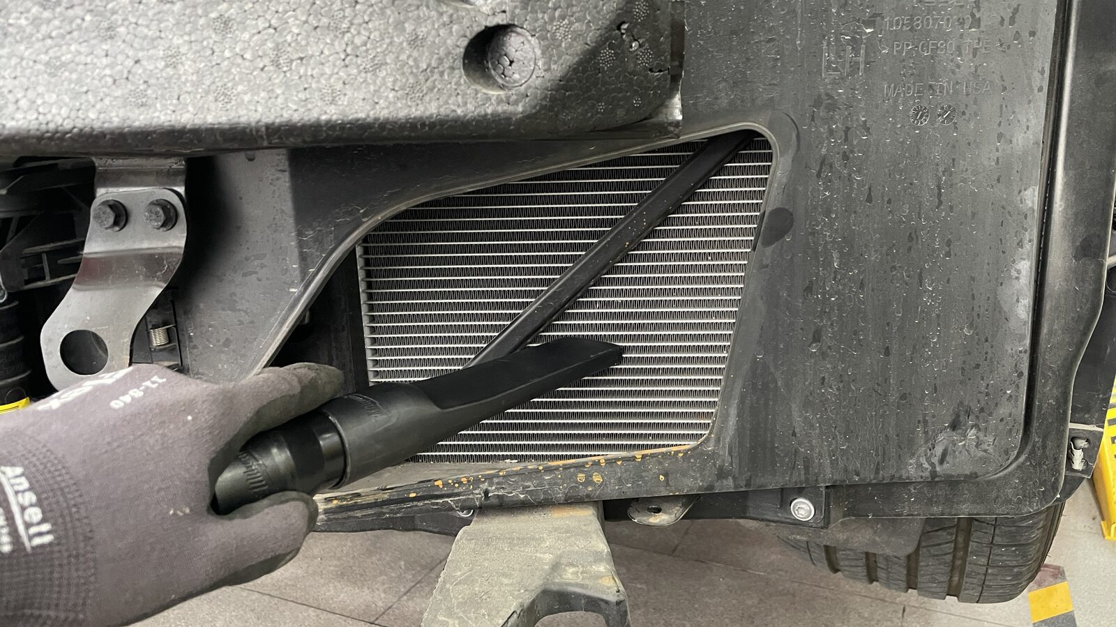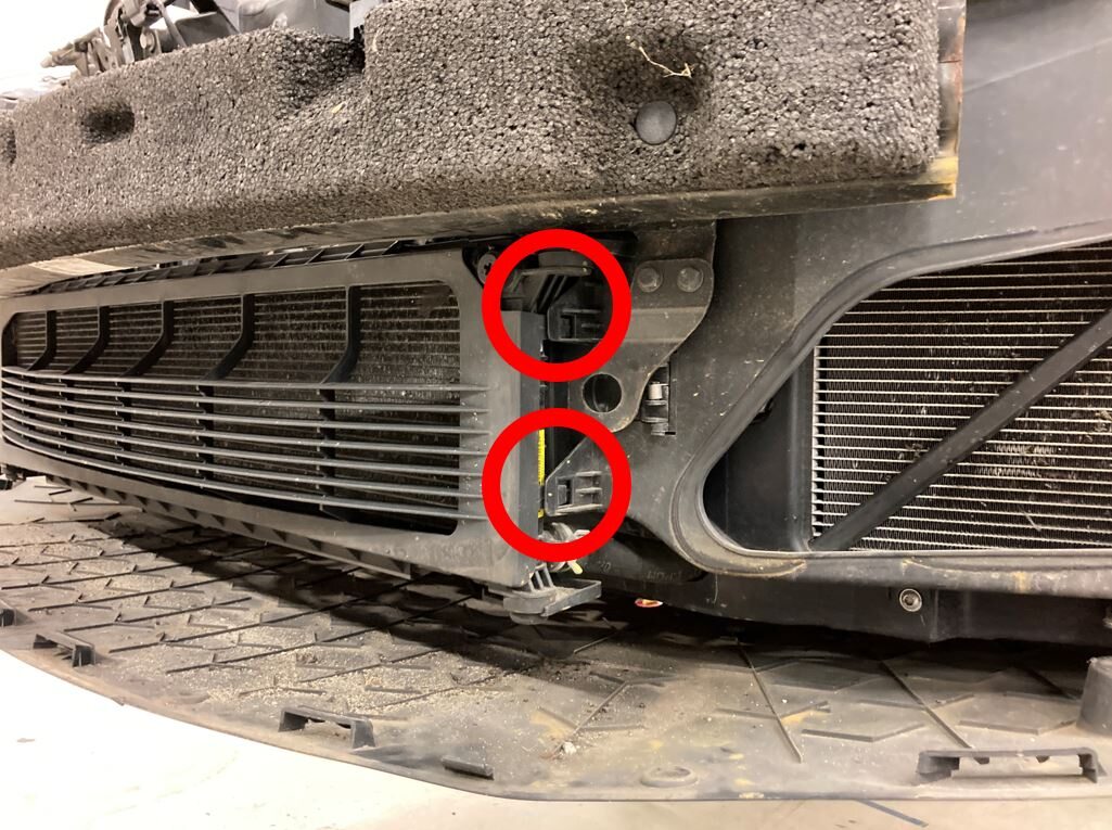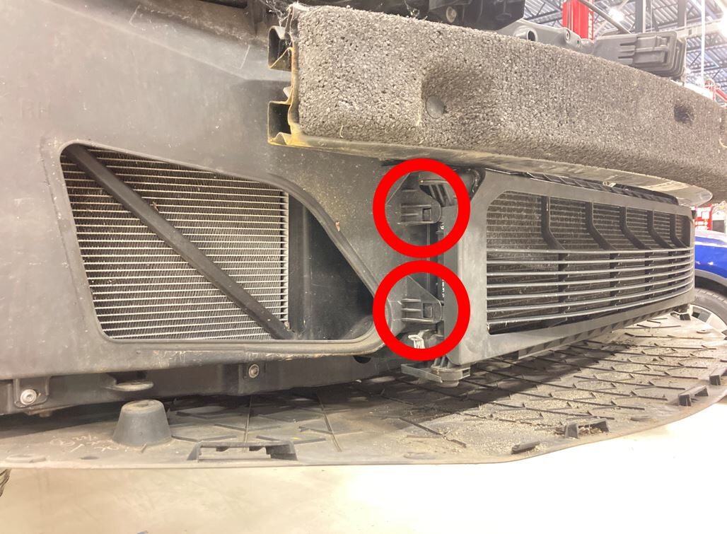 Release the top and bottom tabs securing front ducting to front end ducting assembly and remove from vehicle
