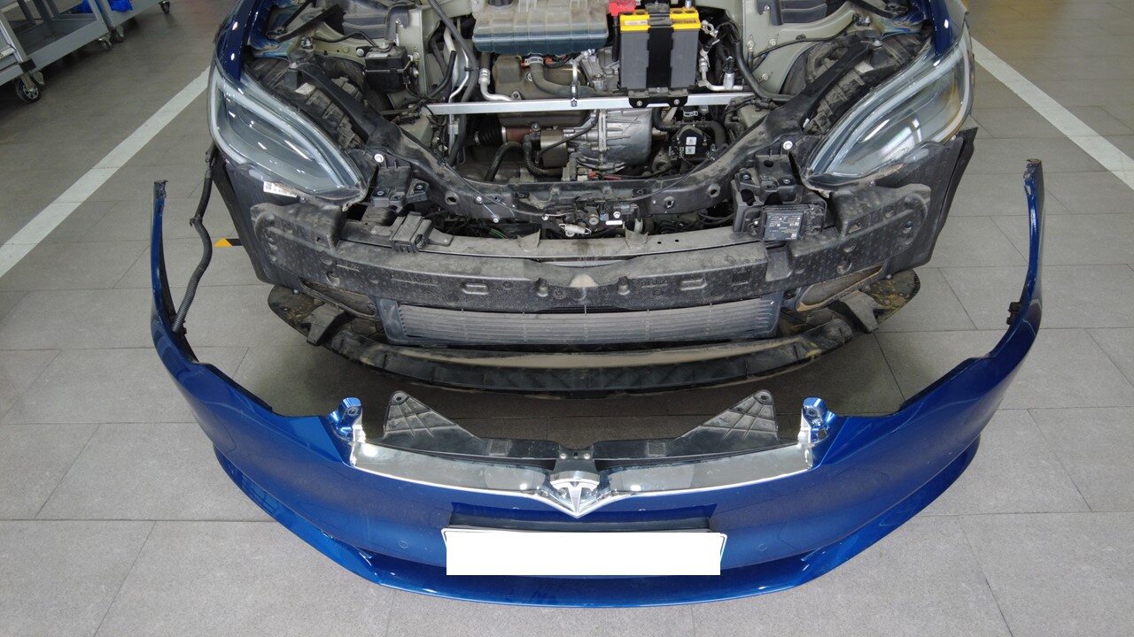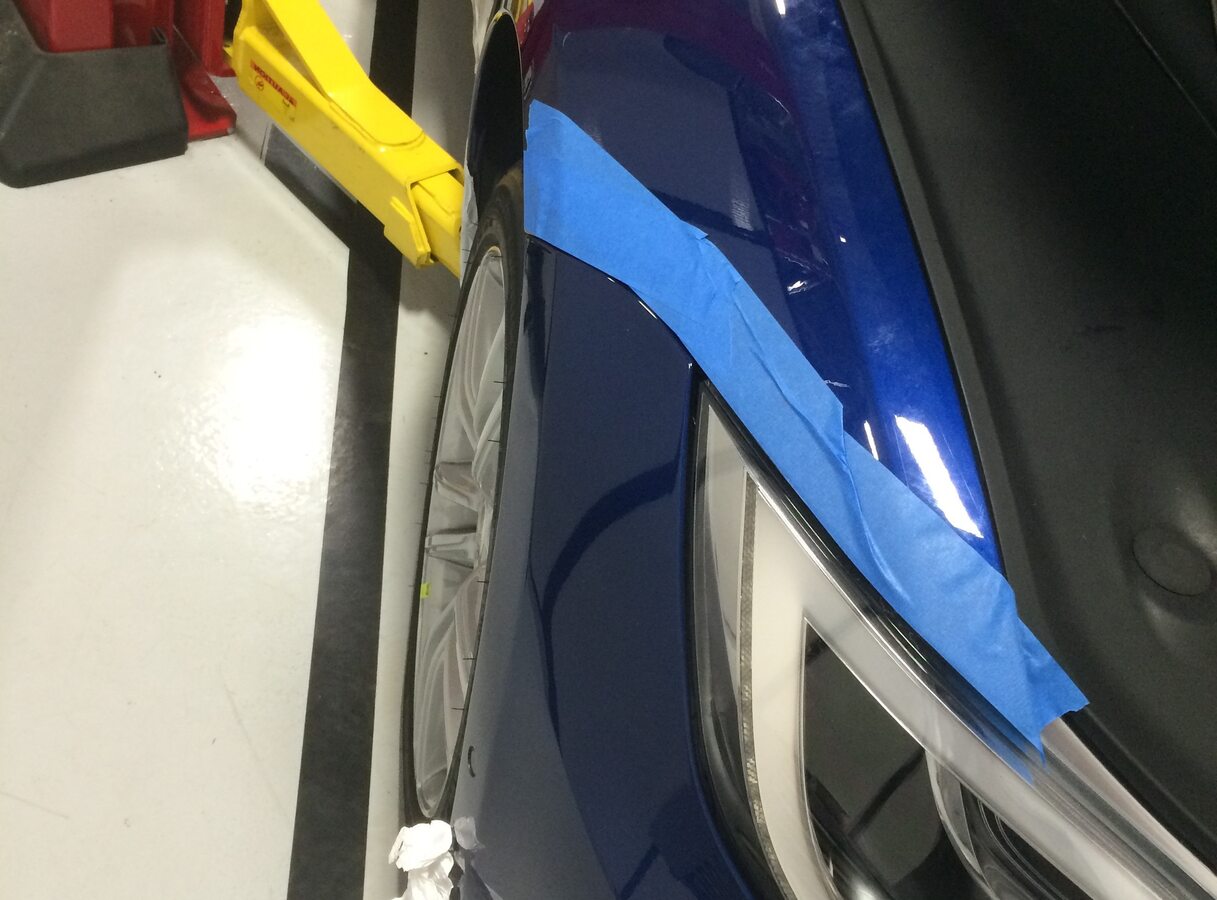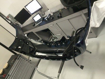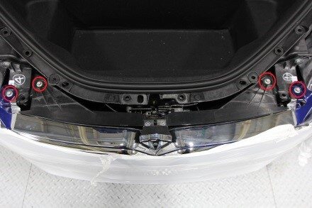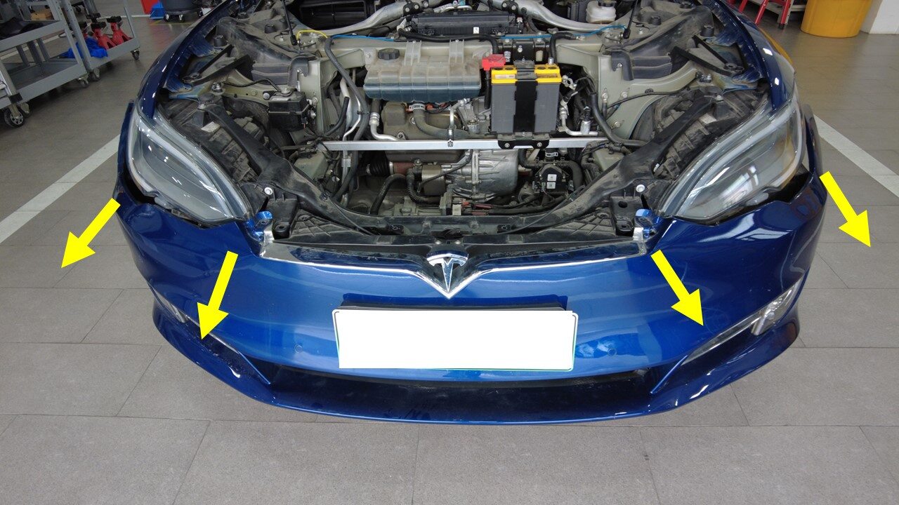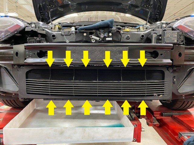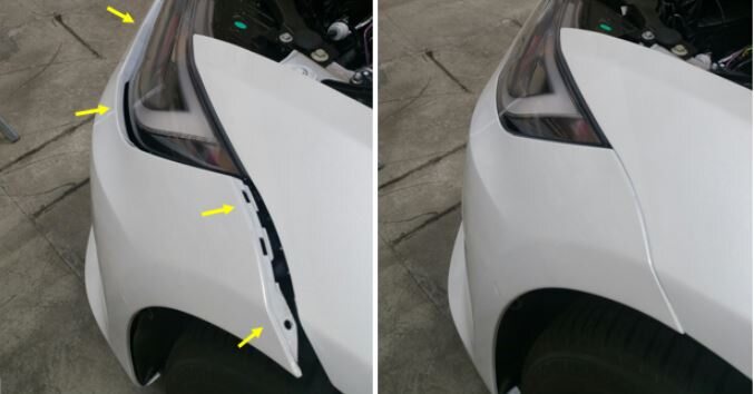 Place front fascia onto vehicle and secure fascia to fender brackets