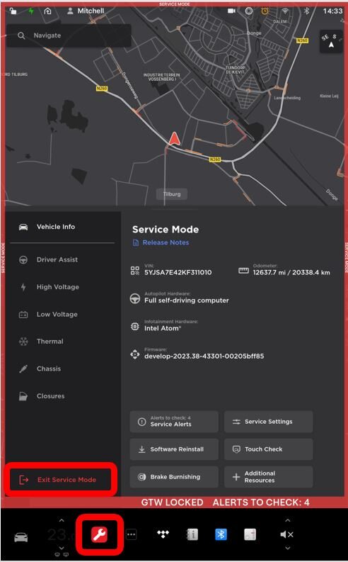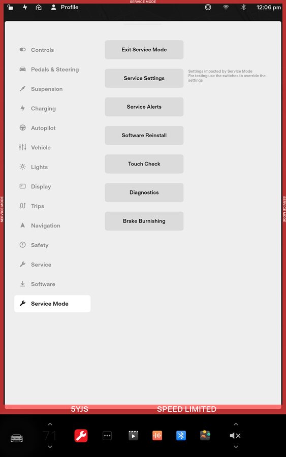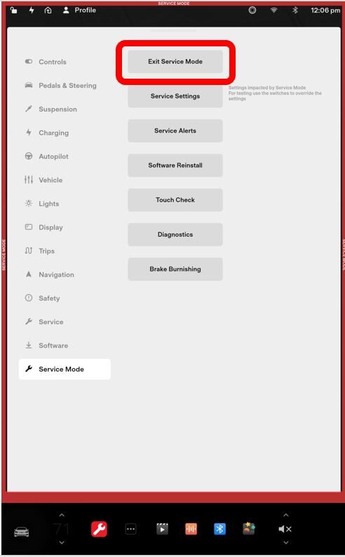 NoteEnter Service mode through touchscreen. Press Car icon => Go to Software tab=> Press and hold ''Model'' for 3 seconds=>In new window type ''service'' or press voice command button on steering wheel and say ''service''=>Press ''OK'' button. Car is in service mode now