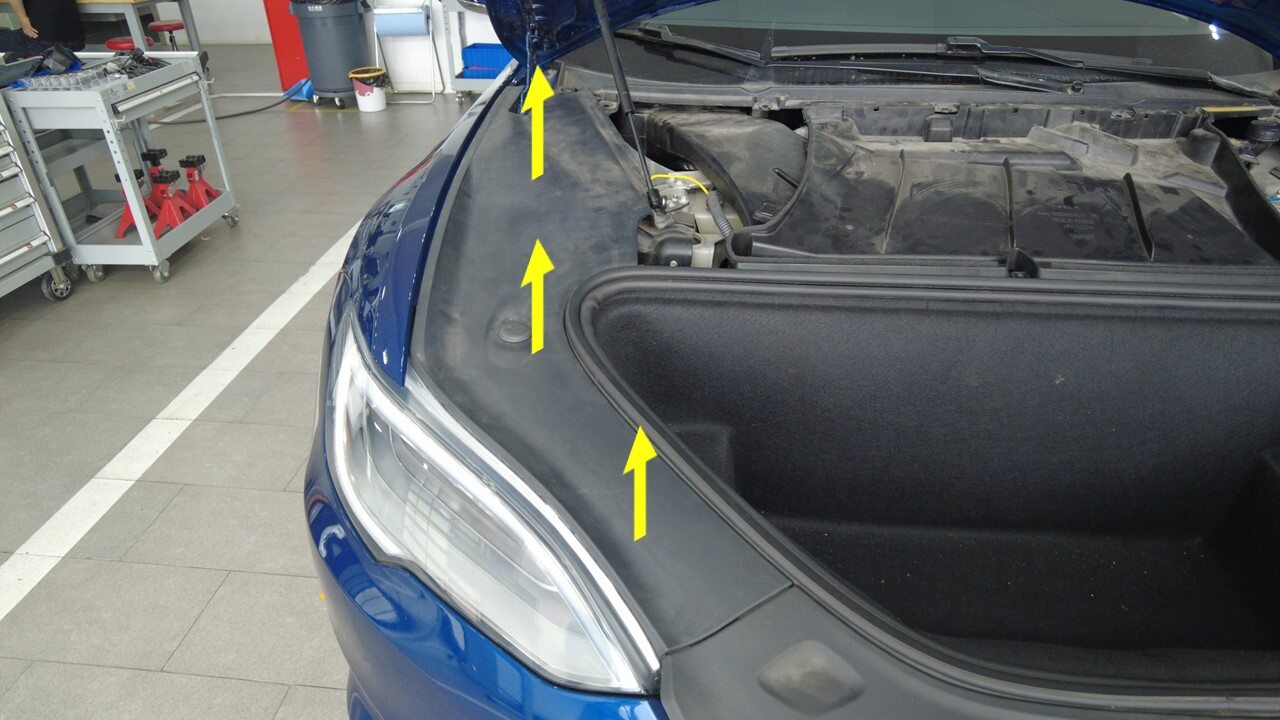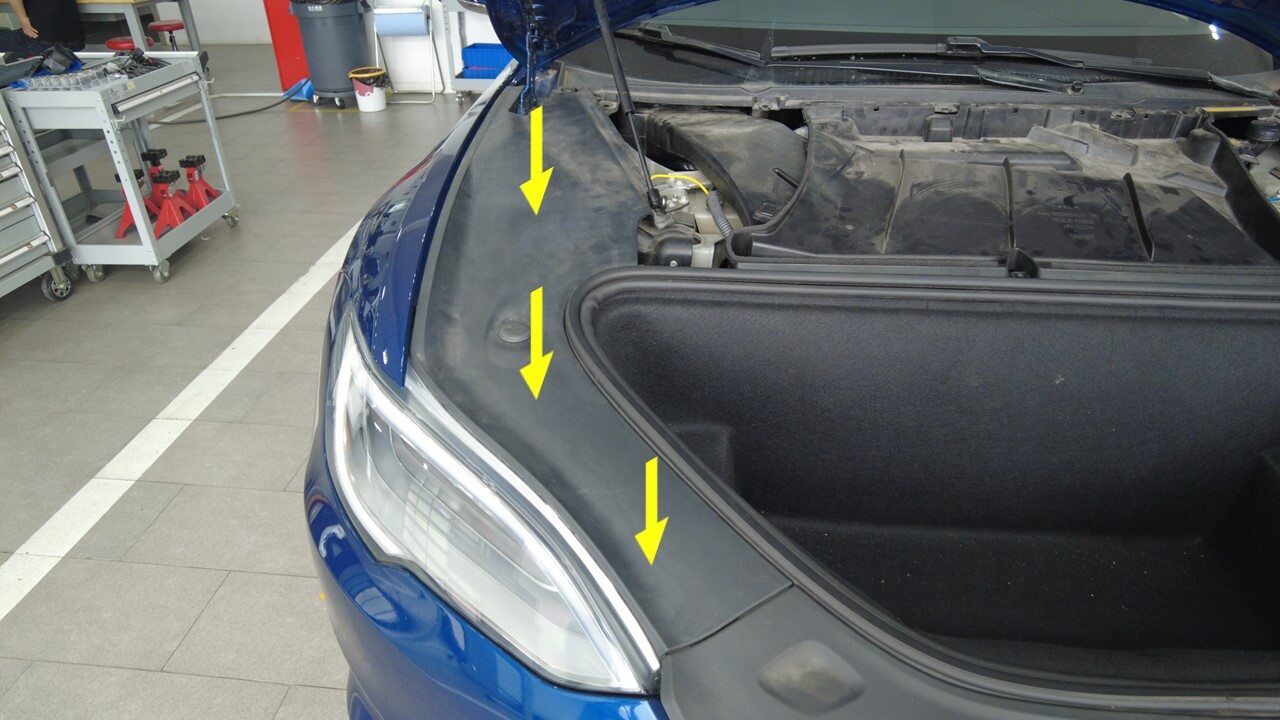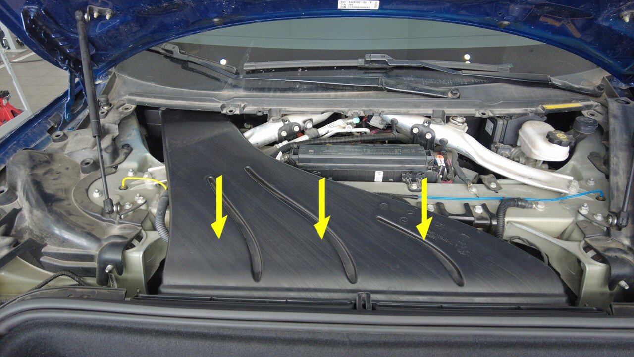 Note2x connectors, Secure edges of carpet underneath underhood storage unit seal