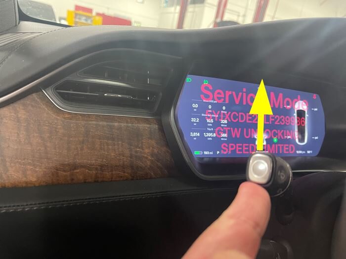 NoteAfter vehicle has been put into "Service Mode", hold down the brake pedal, while holding down break pedal simultaneously hold the turn signal stalk fully up for at least 10 seconds, "GTW UNLOCKING" should pop up on the instrument cluster right below the VIN during these 10 seconds, once gateway is unlocked "GTW UNLOCKED 5400" will be displayed on the instrument cluster underneath the VIN, the gateway will remain unlocked for 90 minutes, follow steps on Toolbox article #5582900 for any additional information