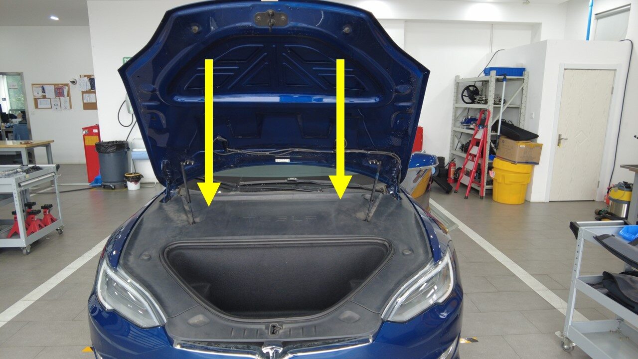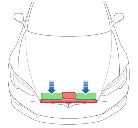 NotePress firmly in green highlighted areas (see image), Damage may result from pressure elsewhere on hood