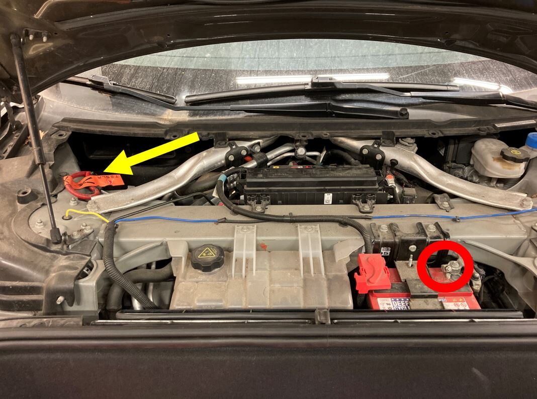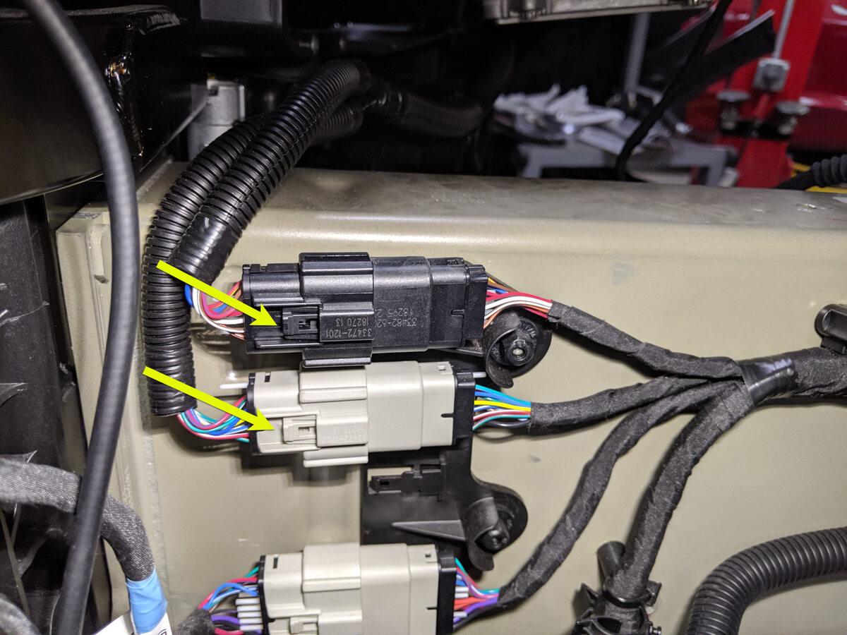 Disconnect light and release switch connectors and remove underhood storage carpet
