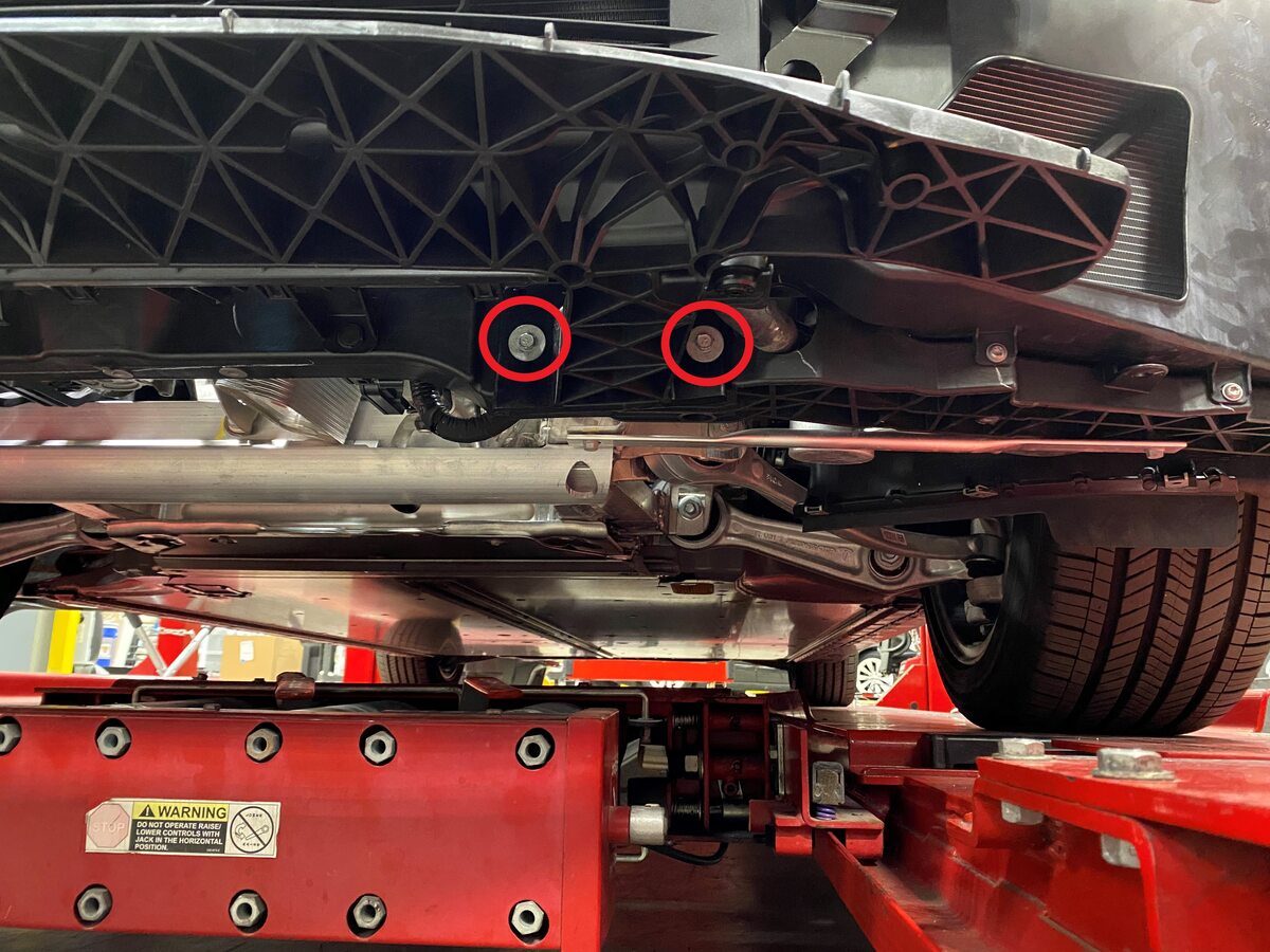 NoteLower rack arms fully and remove them from under vehicle, Remove air suspension from "Jack Mode" via Controls > Service > '' JACK MODE''