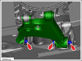- Remove the nut and bolt that attach the LH rear lower control arm to LH rear integral link (torque 130 Nm).