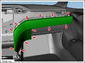 Using a suitable tool, release the clips (x13) that secure the trim to the dash
