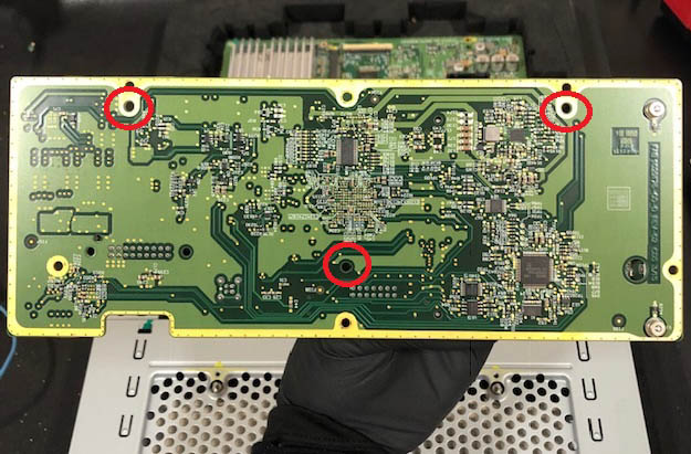 Remove and discard the screws (x6) that attach the circuit board to the housing assembly (torque 0.5 Nm).