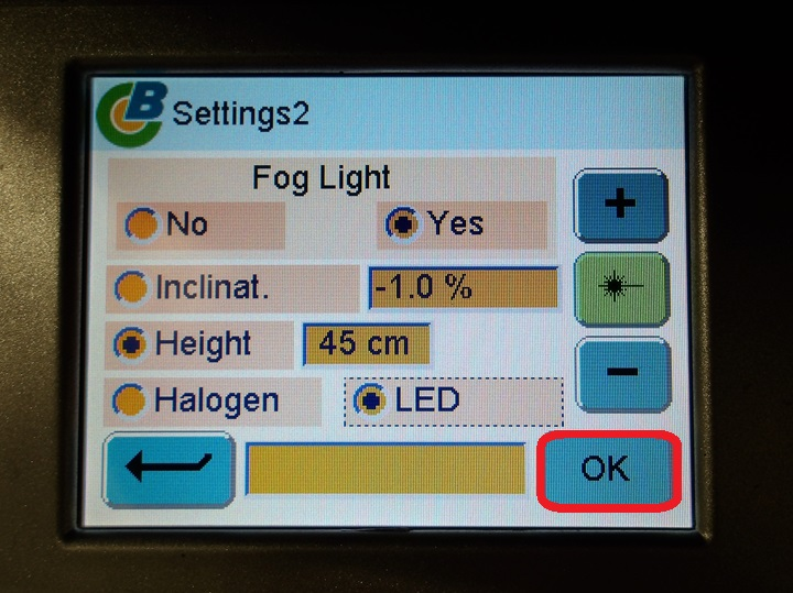 - Roll the headlight tester tool to the RH fog light and repeat steps 17 to 22 for the RH fog light.