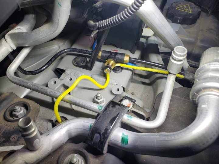- Insérez complètement la conduite de suspension pneumatique dans le raccord, puis tirez doucement sur la conduite pour vous assurer qu’elle est bien fixée.