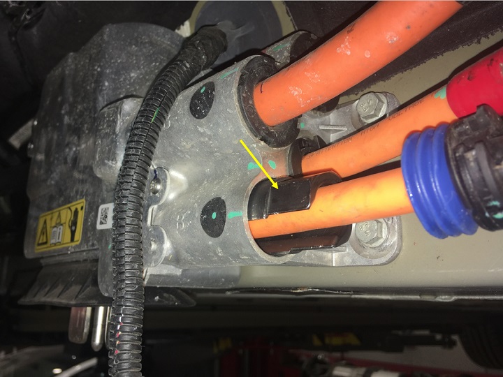 - Installez les anneaux de retenue sur l'extrémité des câbles HV B+ et B-.
