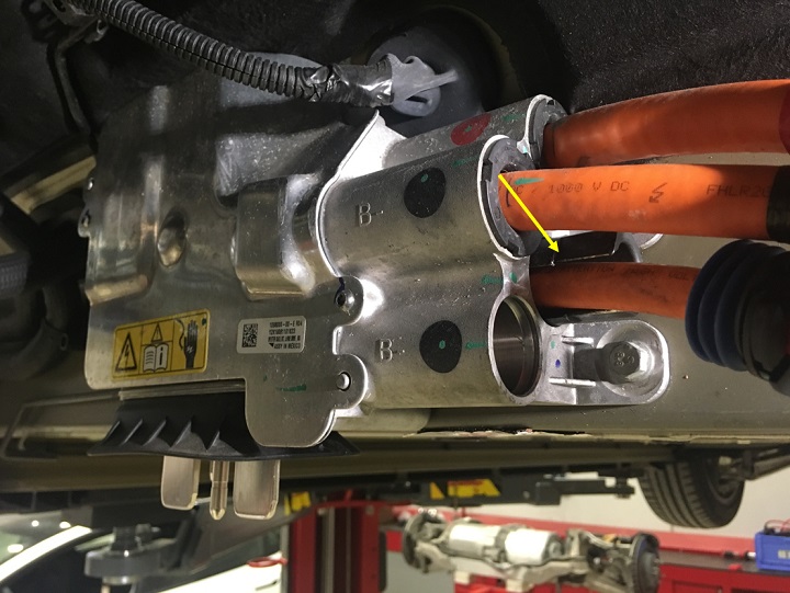Après avoir inséré les nouveaux câbles HV dans le coupleur rapide, effectuez un test de traction pour vous assurer que les câbles sont correctement installés.