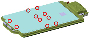 Alignez la feuille de céramique de la batterie haute tension avec le couvercle supérieur de la batterie de manière à ce que les dix (10) trous du couvercle soient alignés avec les dix (10) disques d'étanchéité.