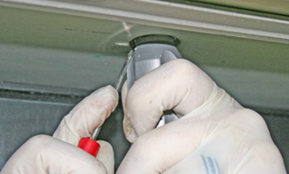 Mettre des gants en nitrile jetables.AvertissementLes étapes suivantes doivent être effectuées dans un endroit bien ventilé tout en portant un masque respiratoire contre les particules 3M P95 ou équivalent. Consultez toutes les instructions et tous les avertissements du produit pour connaître la méthode d'application appropriée et les précautions de sécurité