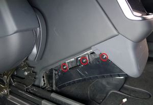 - Remove the passenger footwell cover. See Cover - Footwell - Passenger (Remove and Replace).