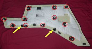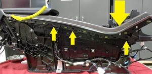 Install the clips (x11) that attach the RH center console side panel carpet to the
